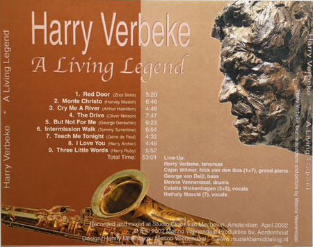 Harry Verbeke – Monte Christo Harry Verbeke – tenorsax,Cajan Witmer – piano, George van Deijl – bass, Menno Veenendaal – drumsHarry Verbeke – I love You Harry Verbeke – tenorsax, Nick van den Bos – piano, George van Deijl – bass, Menno Veenendaal – drums
